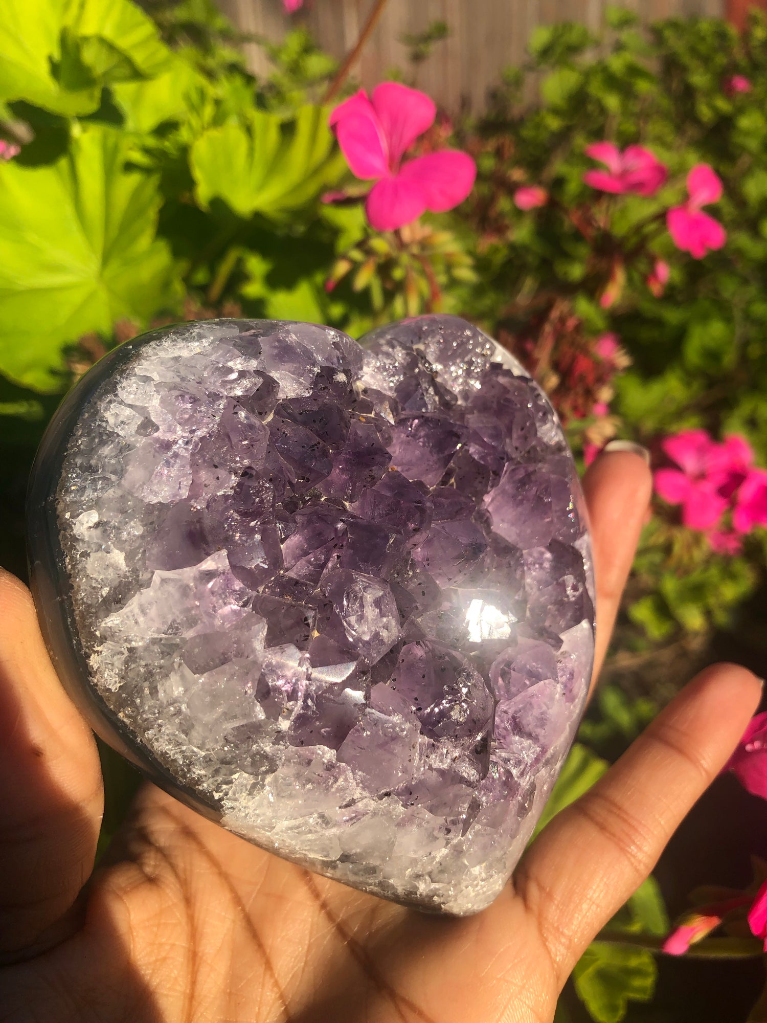 A beautiful amethyst druzy Heart with lots of rainbow inclusions.