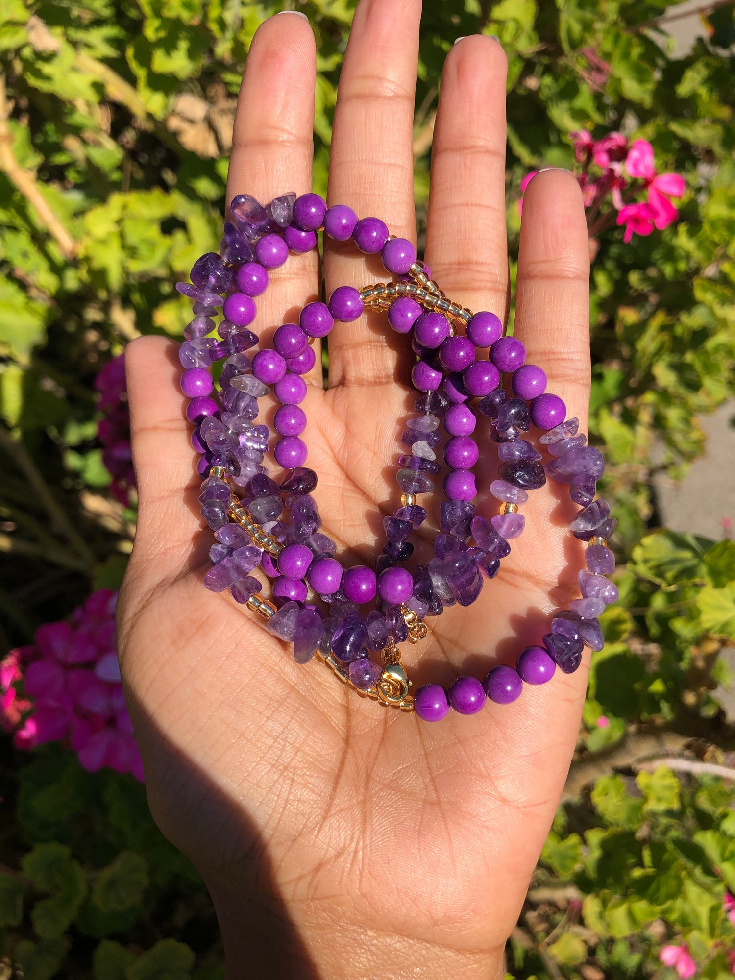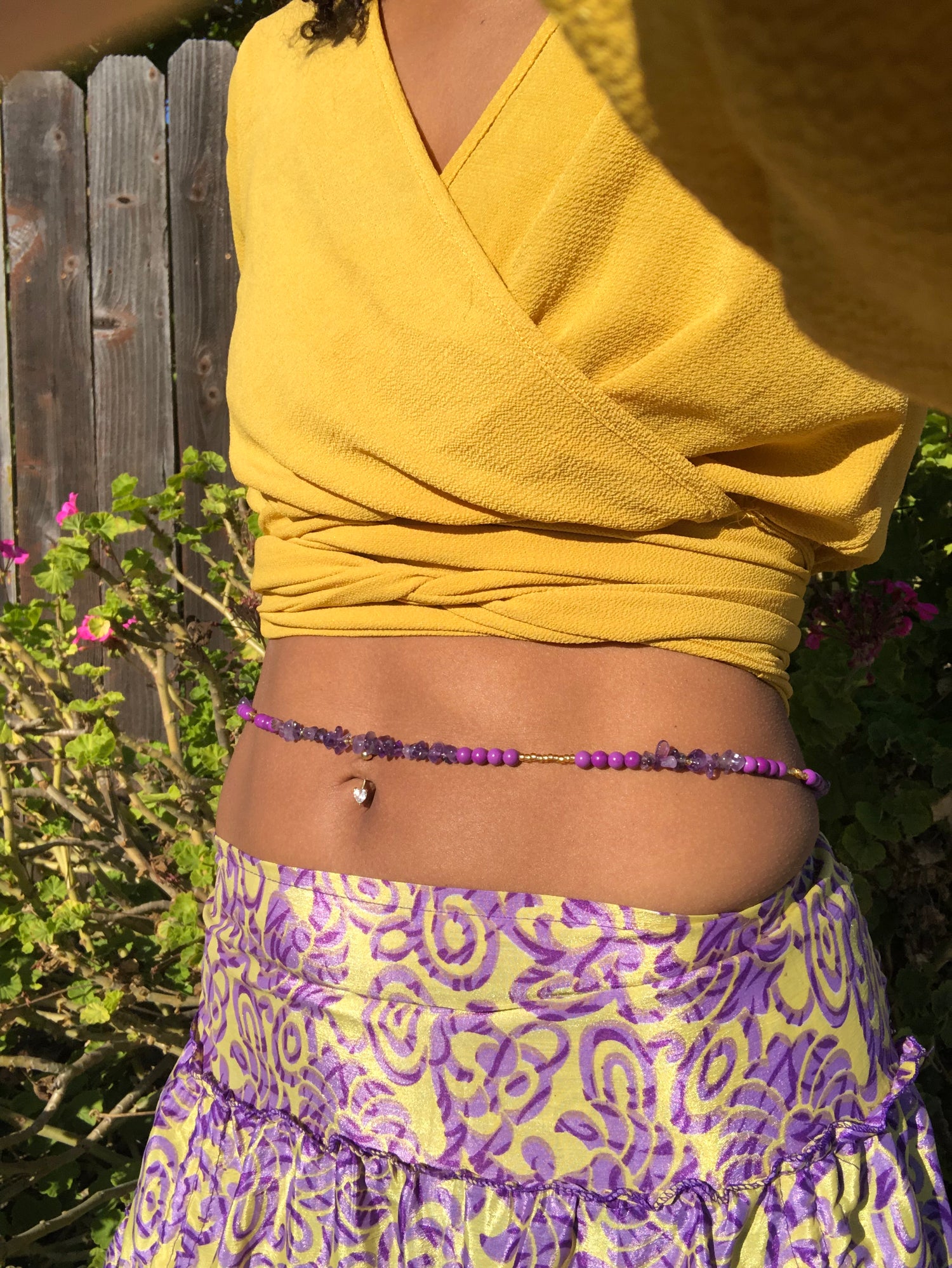 Amethyst and gold seed beads waist beads 29-33 inch adjustable clasp