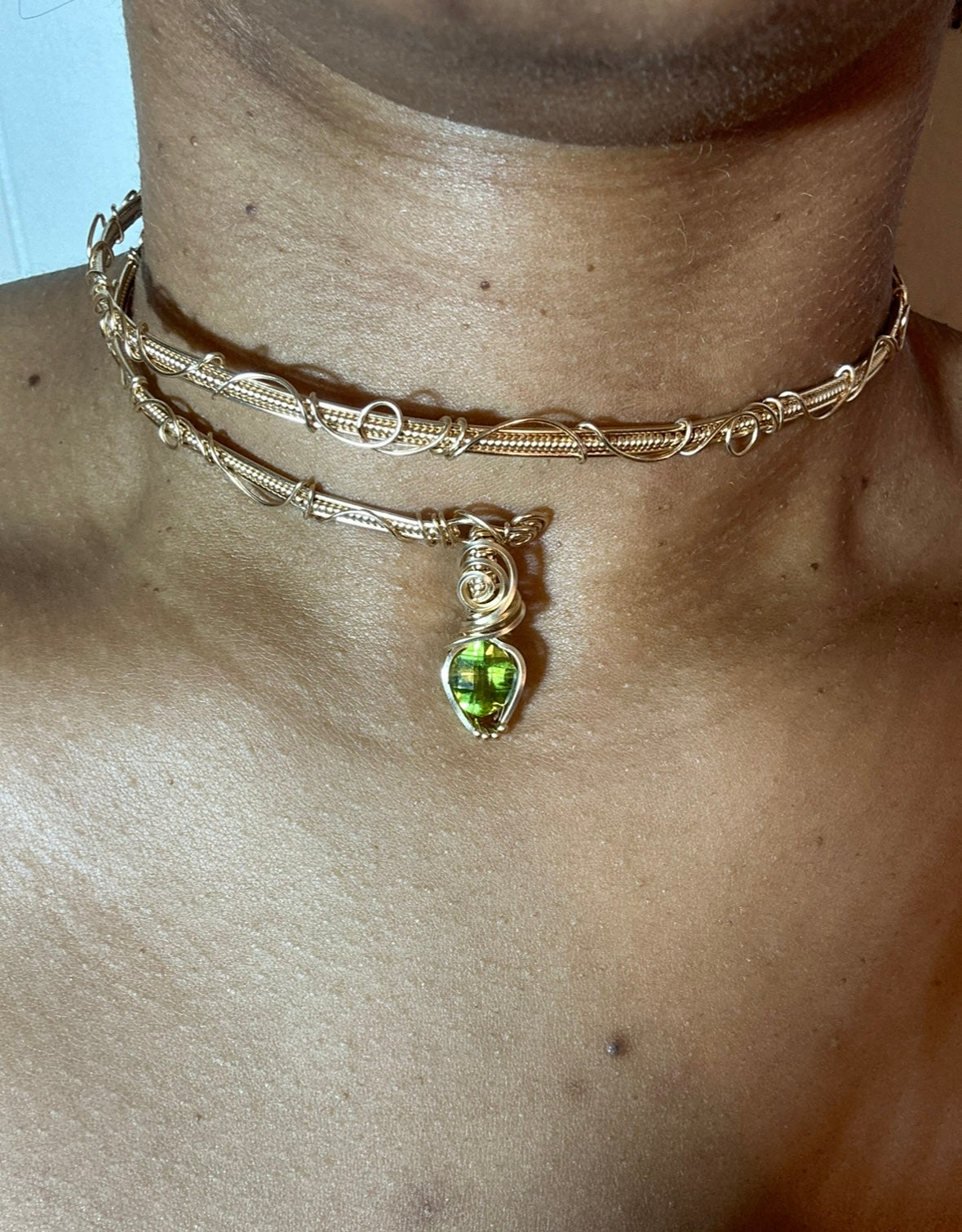 16in”- 18in” adjustable choker, can be worn as an Arm Cuff, Bracelet, and Anklet.
