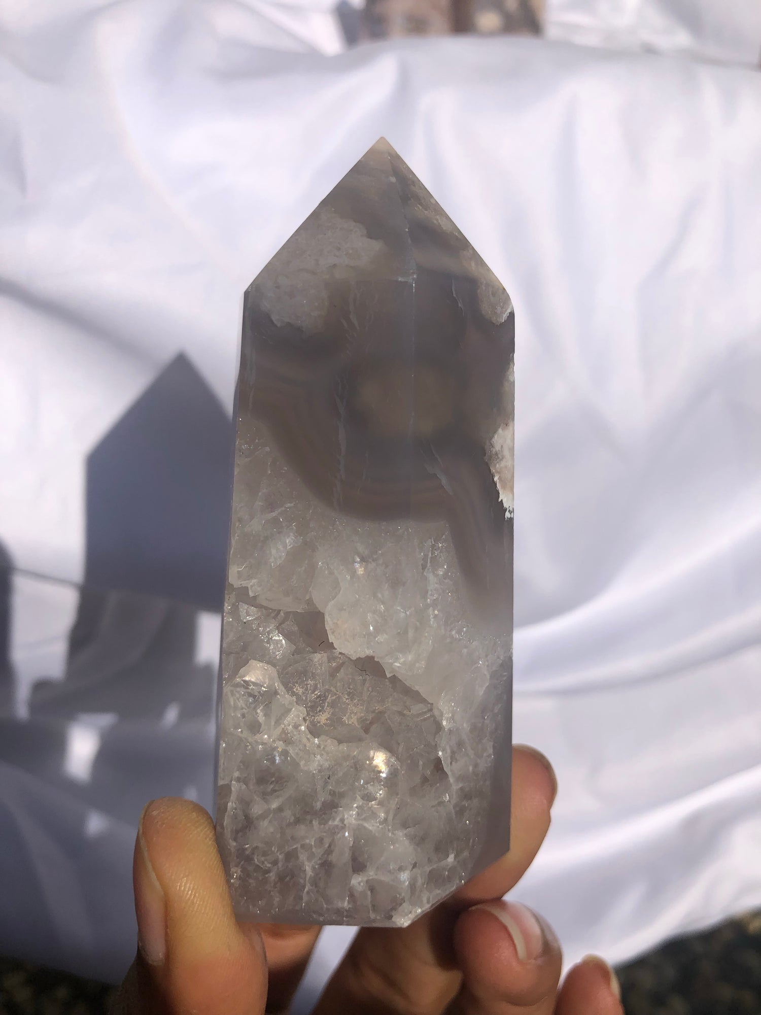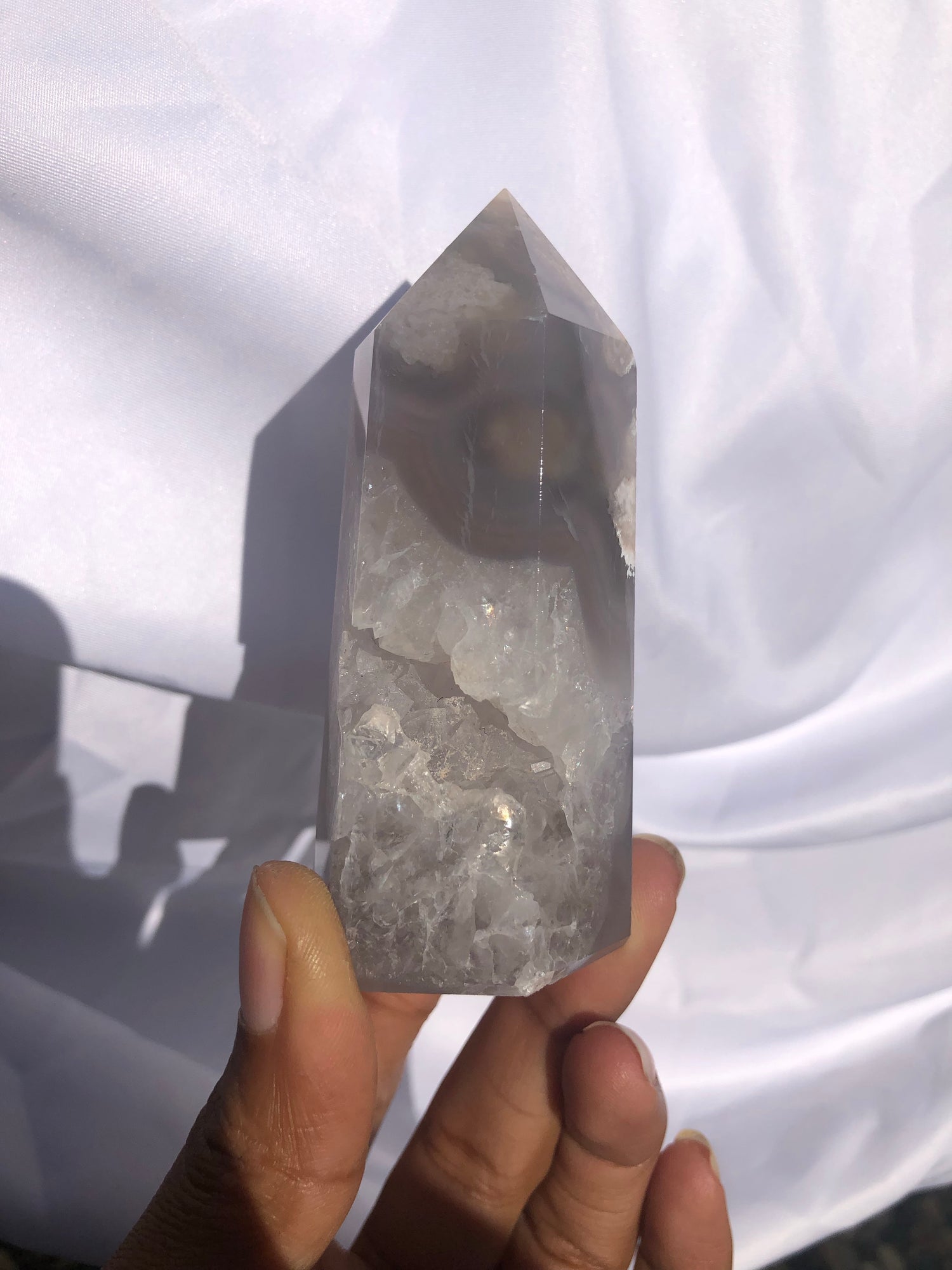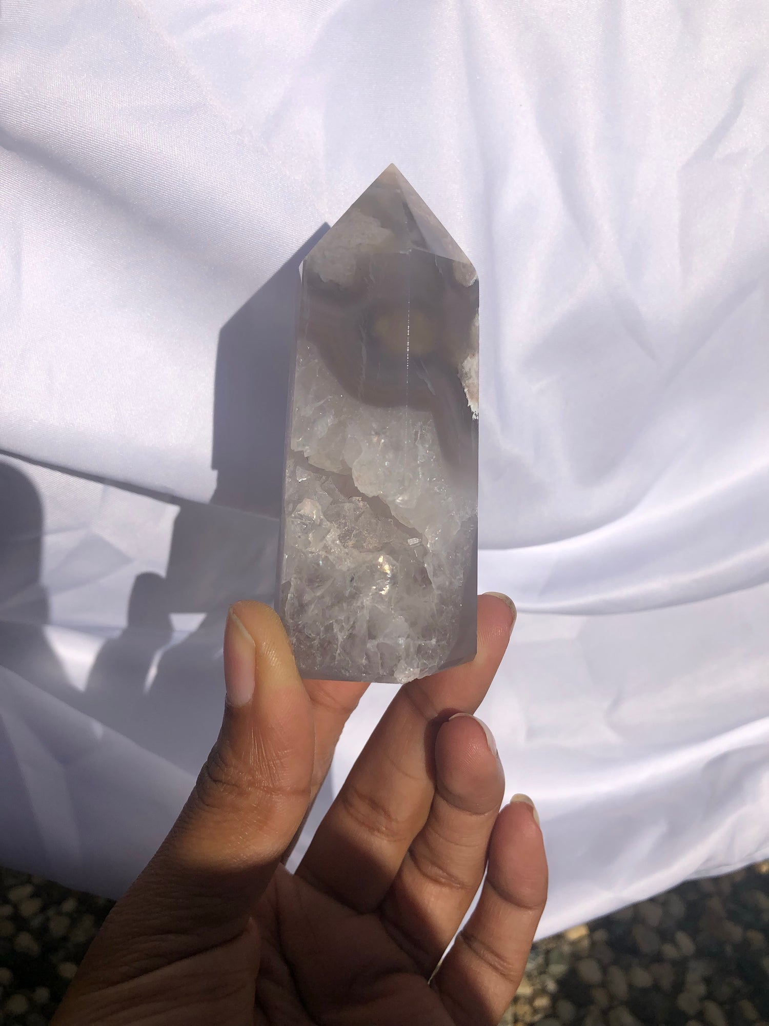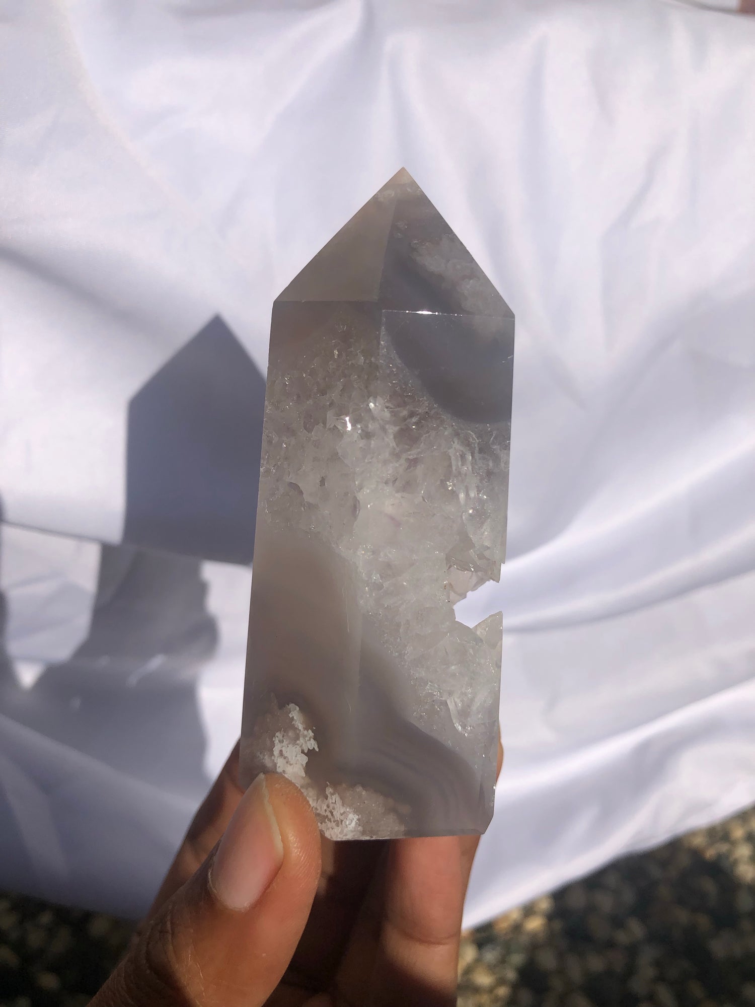 A rare High Quality Blue Flower Agate x Pink Amethyst and Druzy