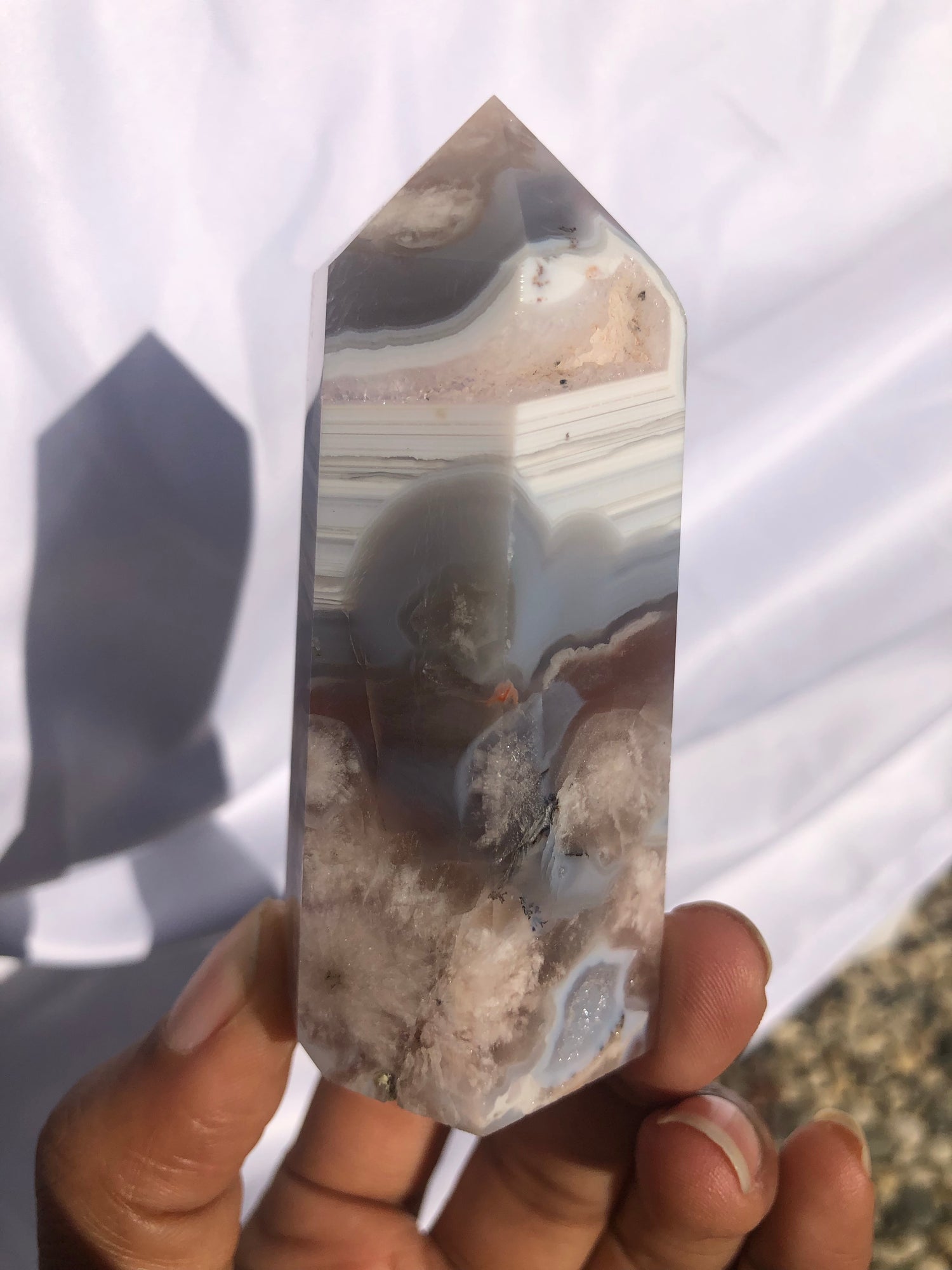 A rare High Quality Blue Flower Agate x Pink Amethyst with druzy pockets
