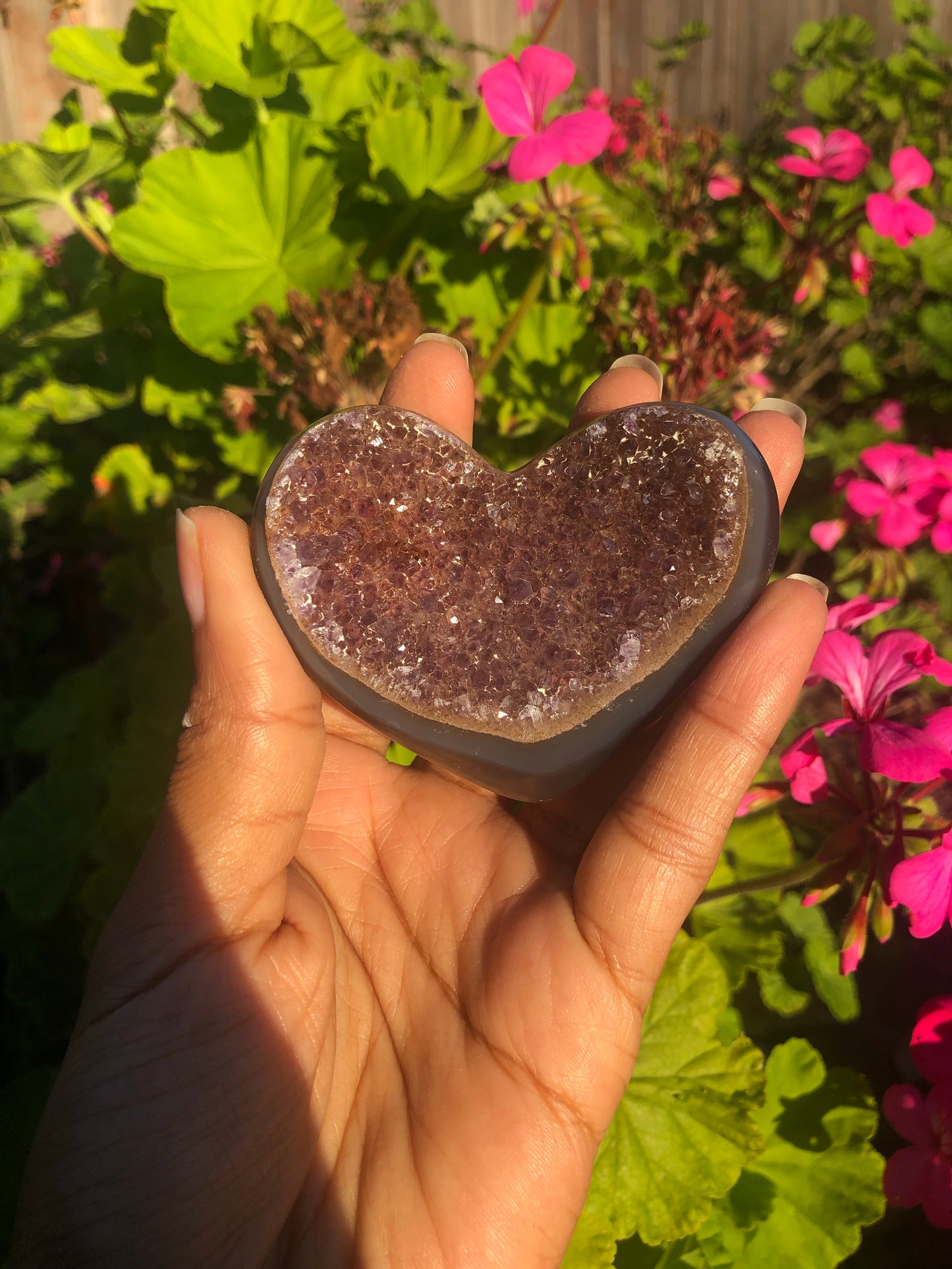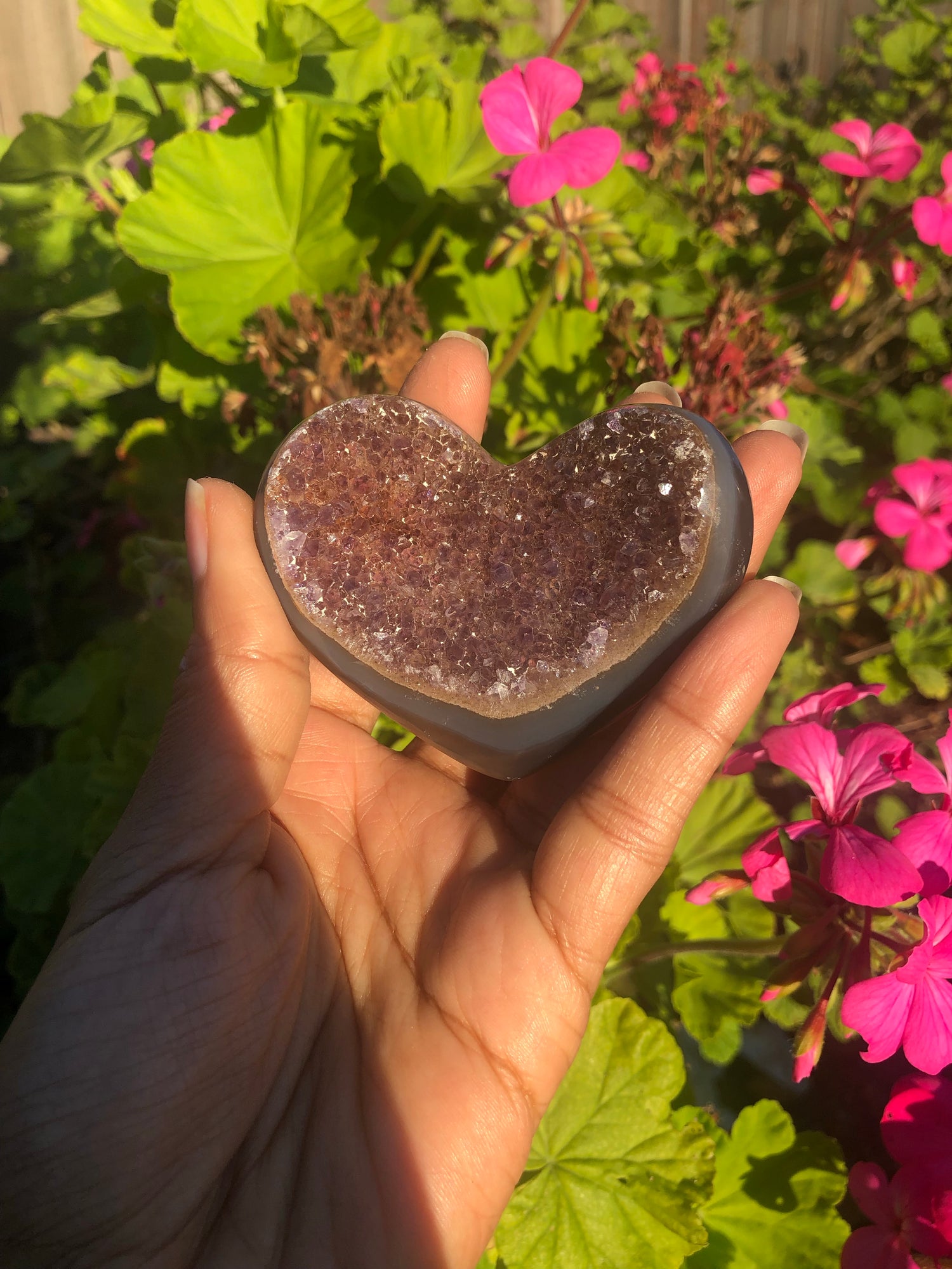 Beautiful Burgundy Druzy Heart w/ black onyx banding
