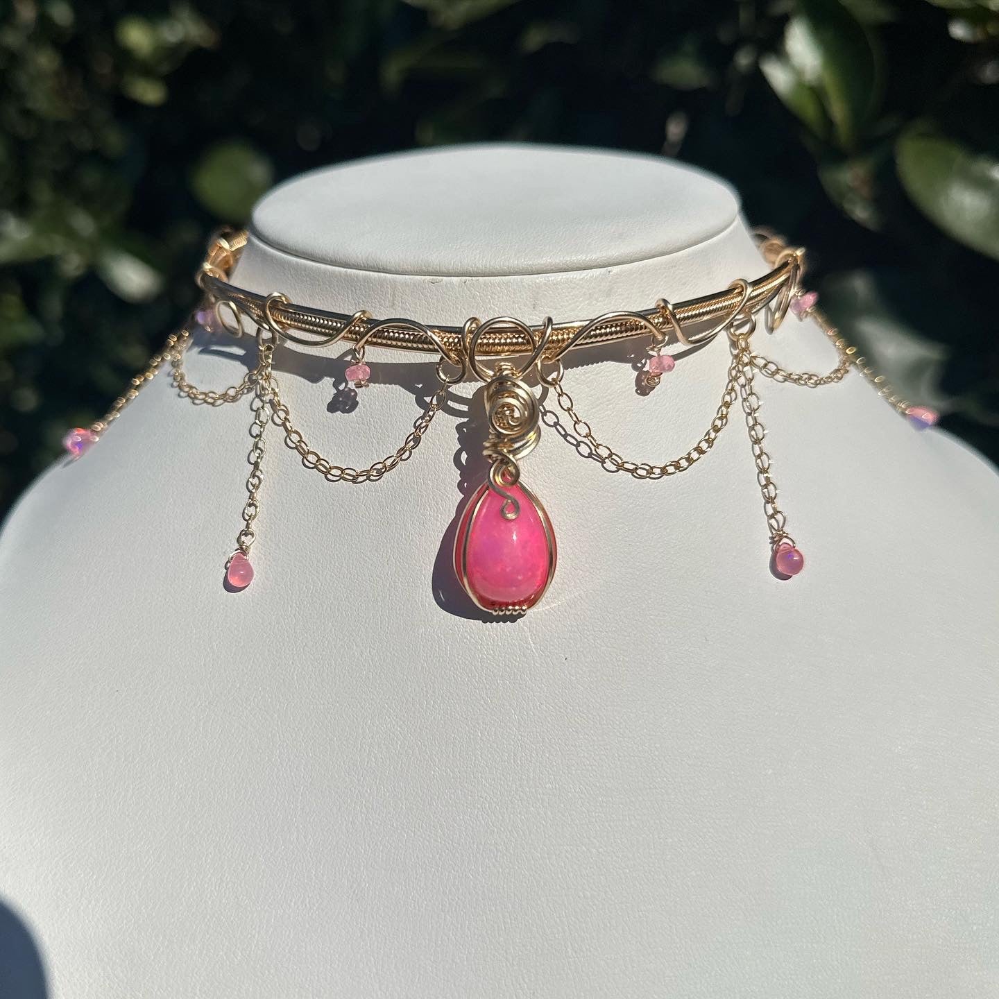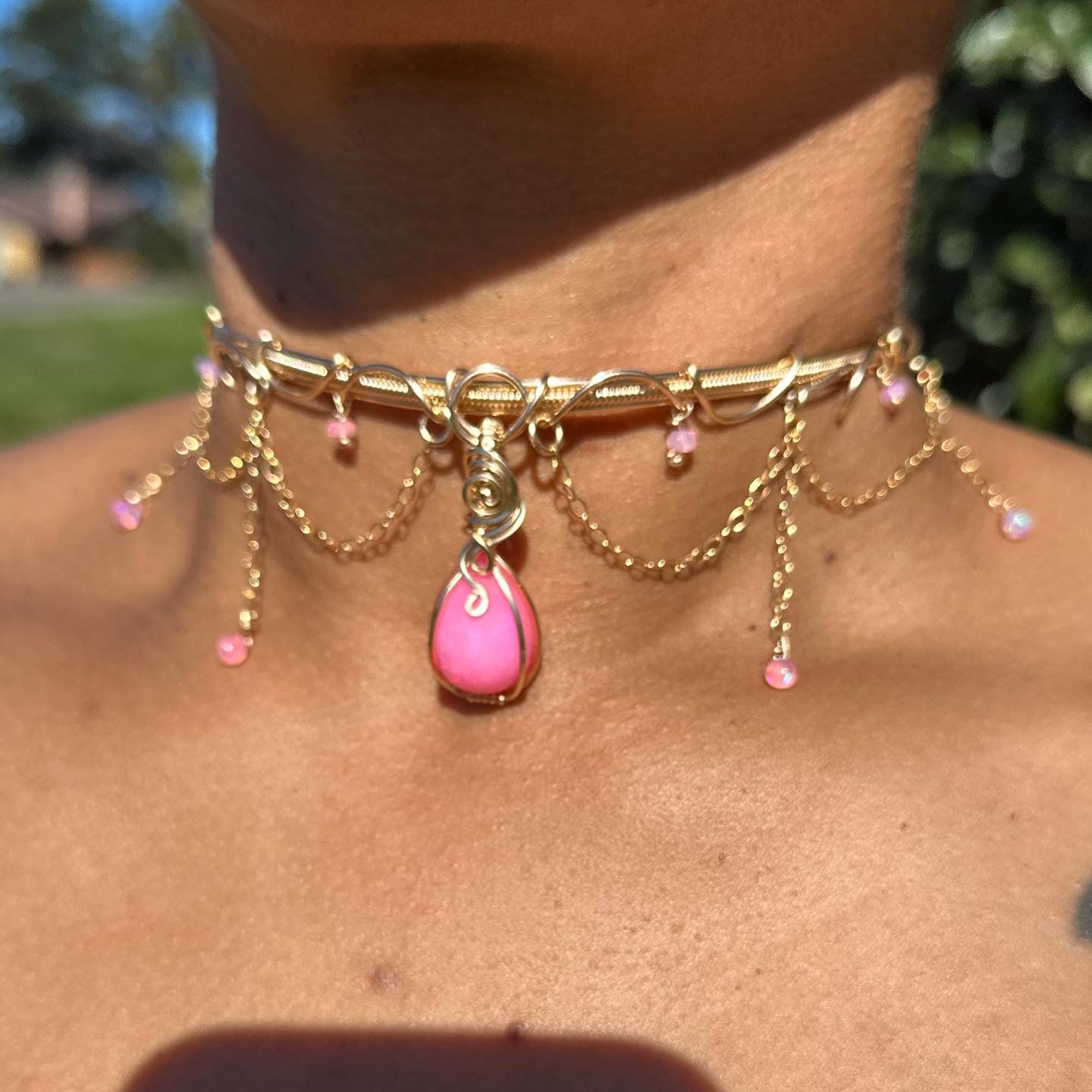 A handmade Pink Opal Choker