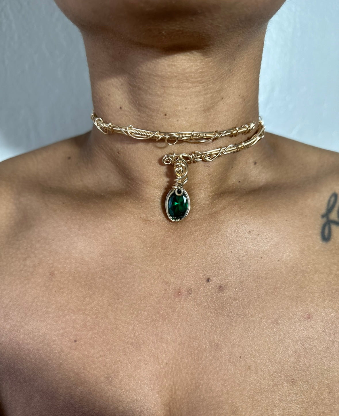 16in”- 18in” adjustable choker, can be worn as an Arm Cuff, Bracelet, and Anklet.