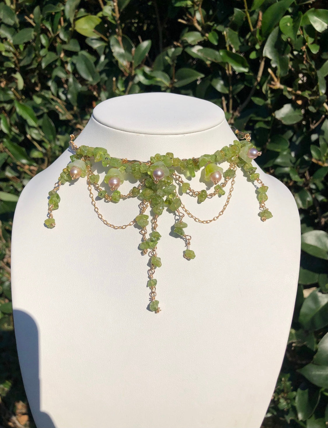 Gold Filled Peridot & pink fresh water pearls handmade adjustable choker necklace