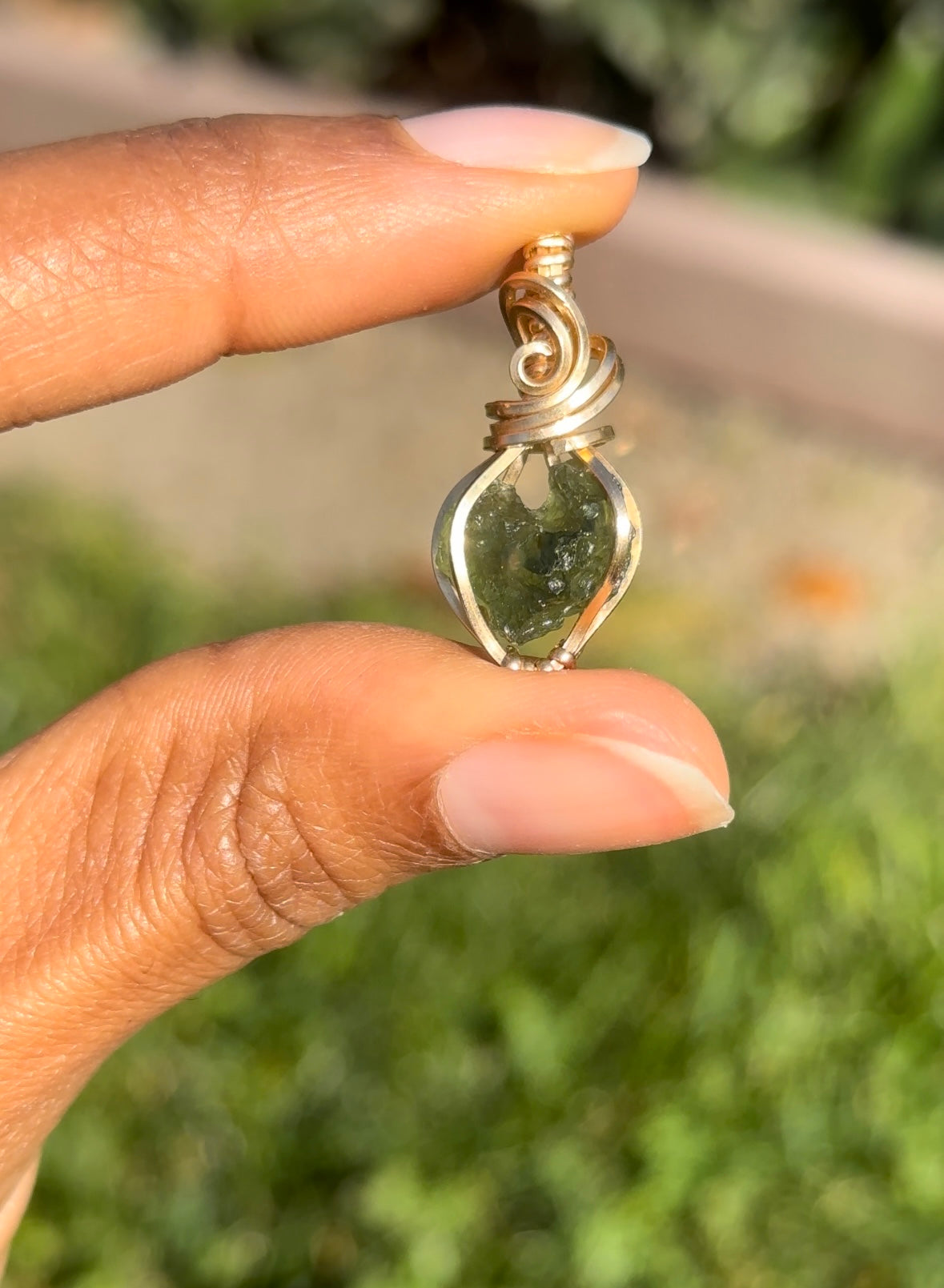 Is a tektite, a stone of intense frequency and high vibration. These natural green crystals are powerful to create transformation!