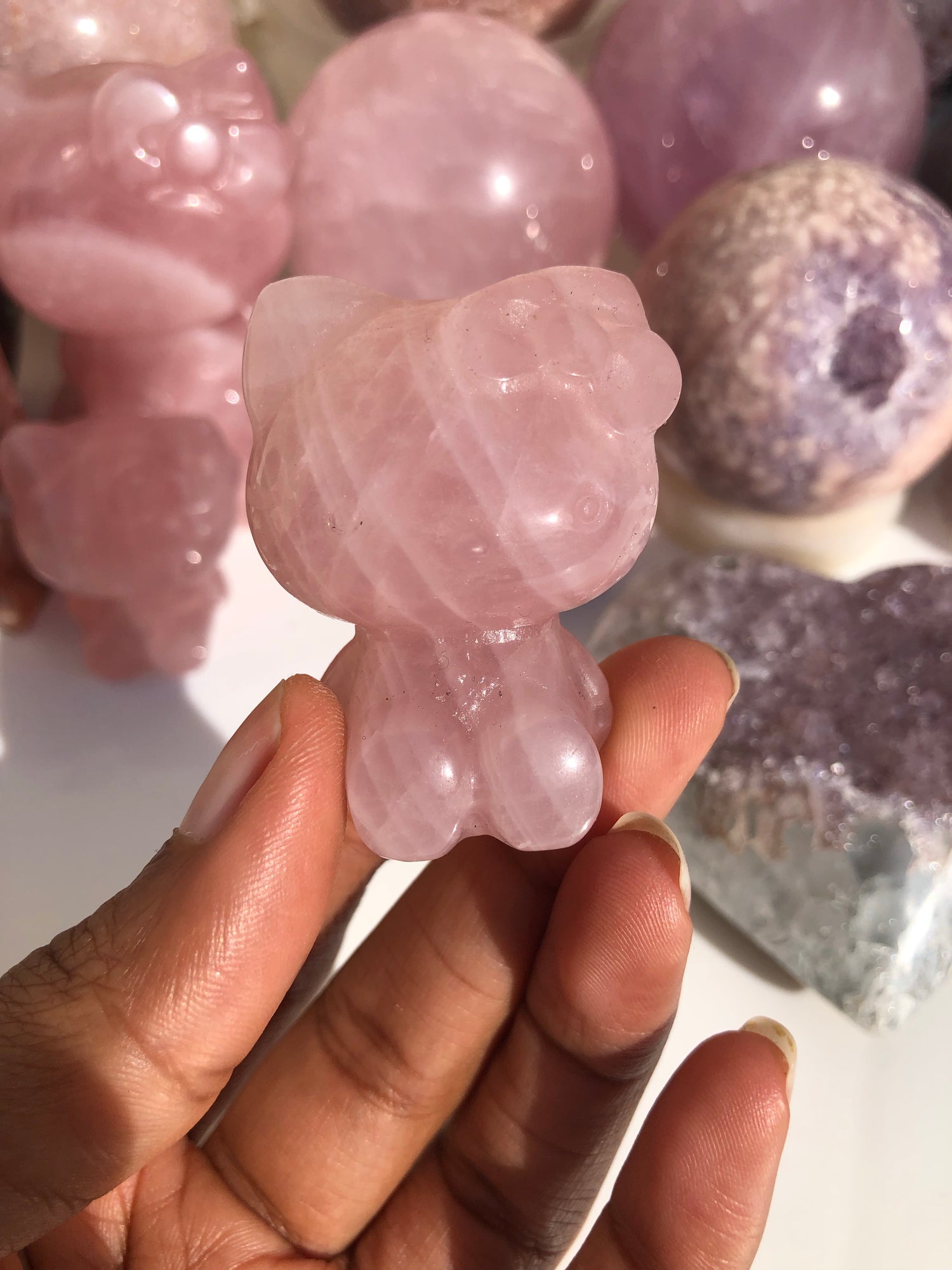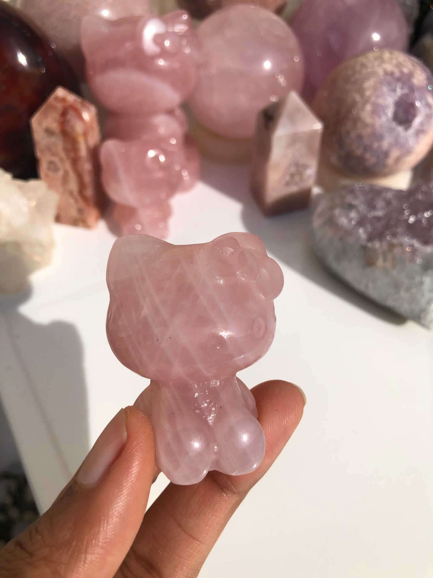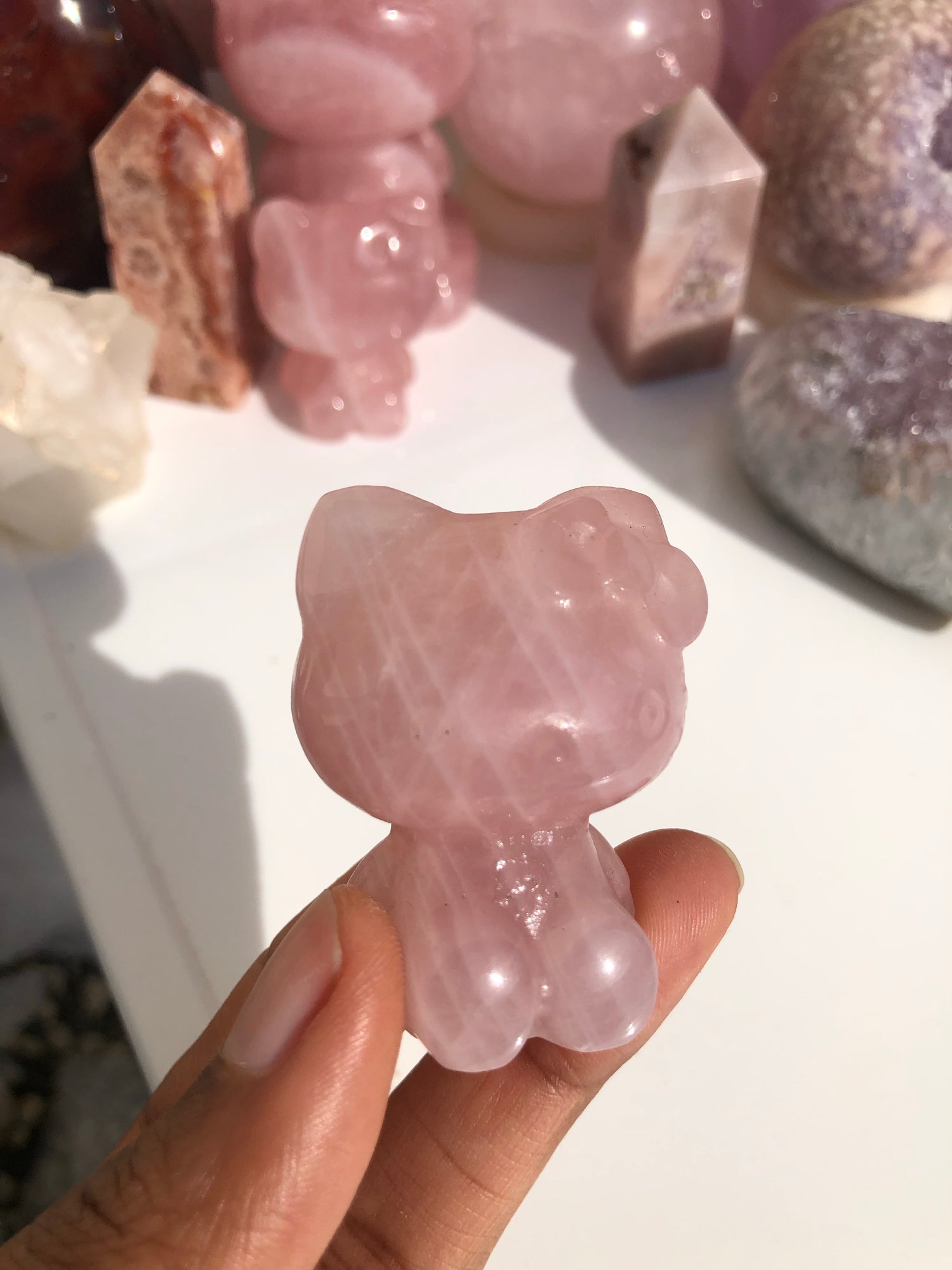 2inch Hello Kitty Rose Quartz Carving