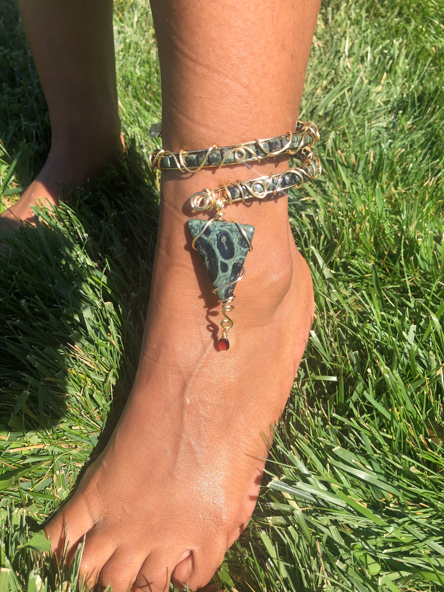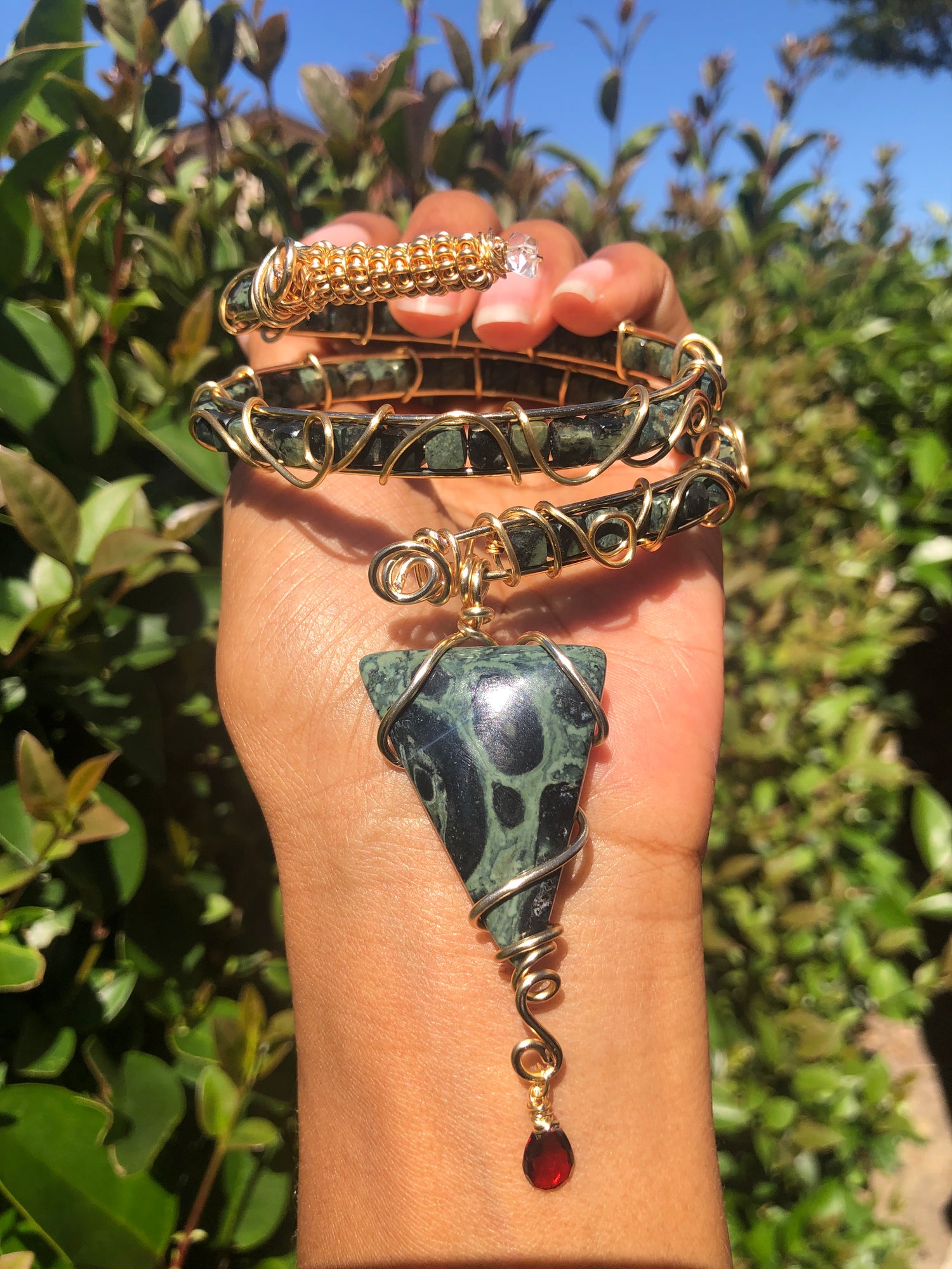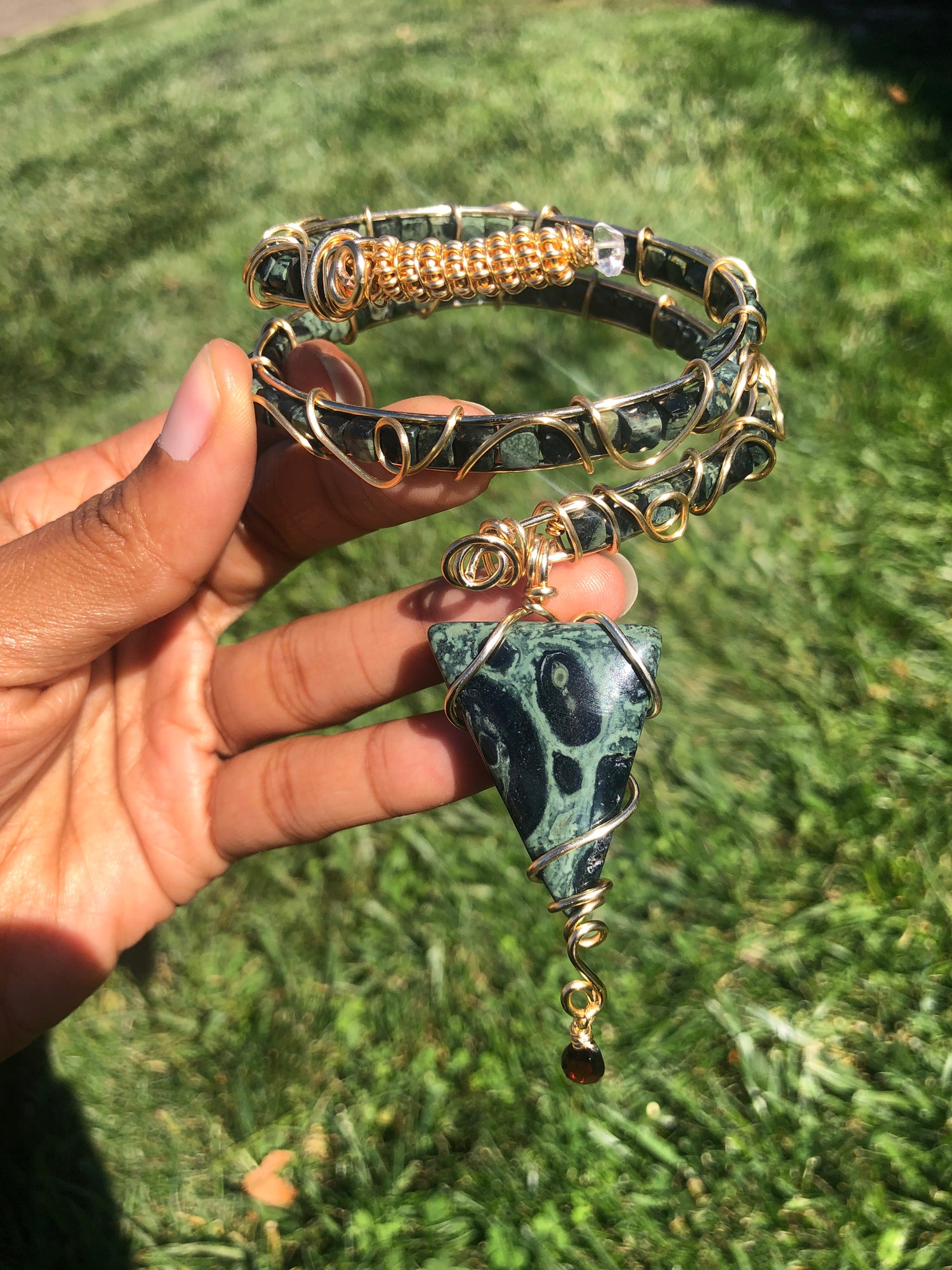 Gold filled Handmade Kambaba Jasper Adjustable 4-1 Choker , Arm Cuff, Bracelet, and anklet