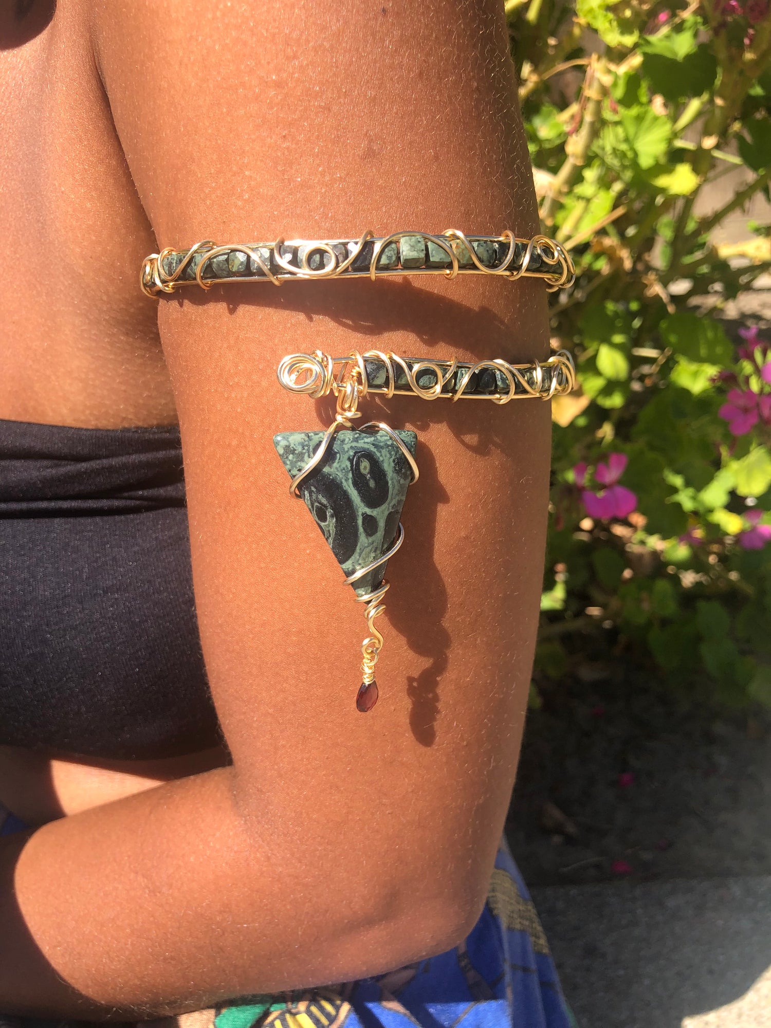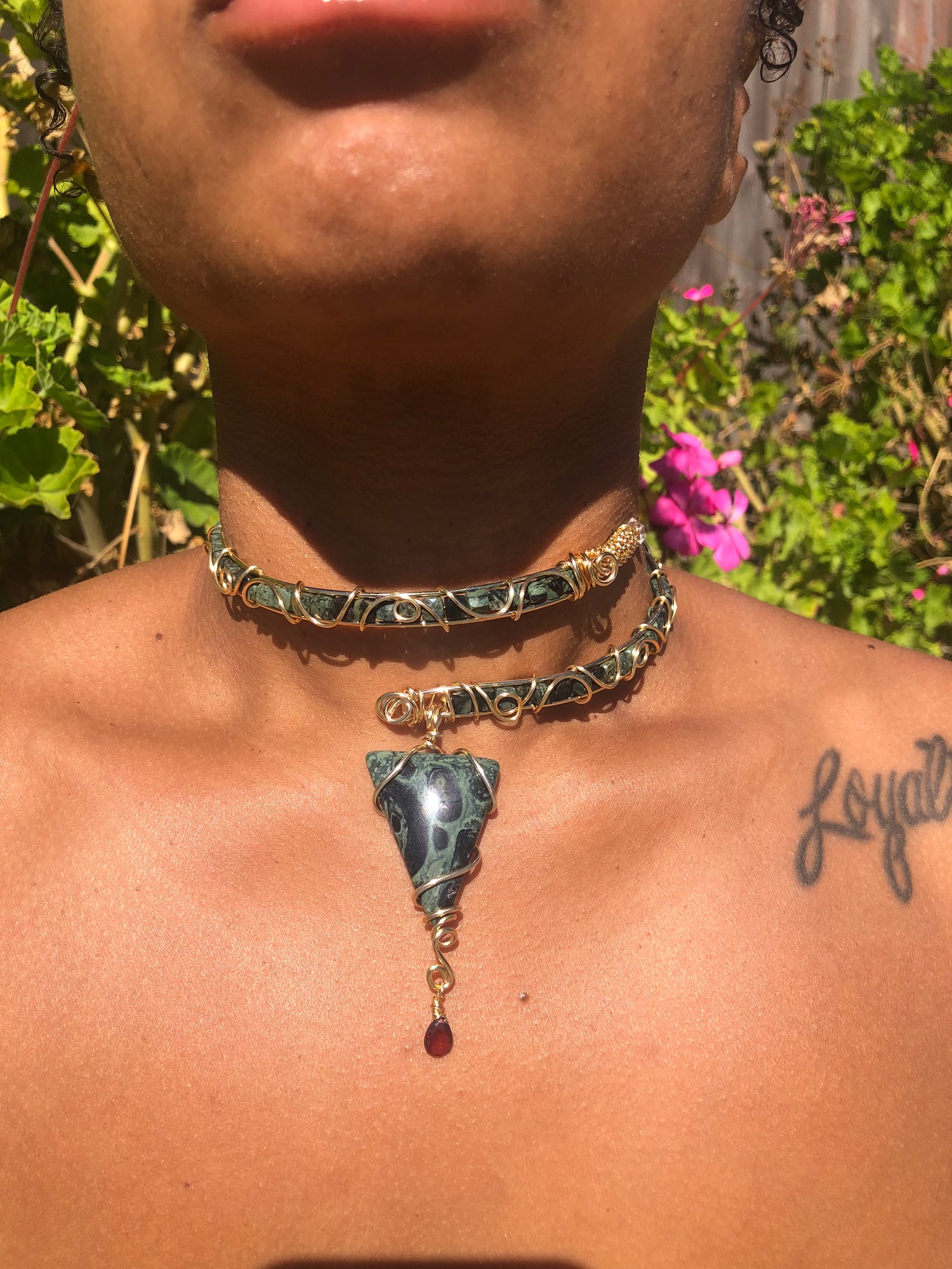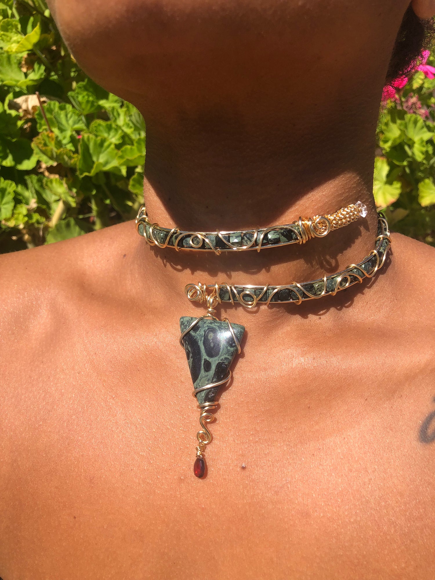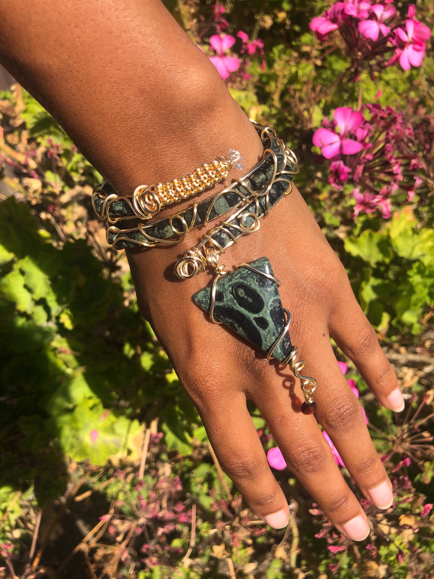 Gold filled Handmade Kambaba Jasper Adjustable 4-1 Choker , Arm Cuff, Bracelet, and anklet