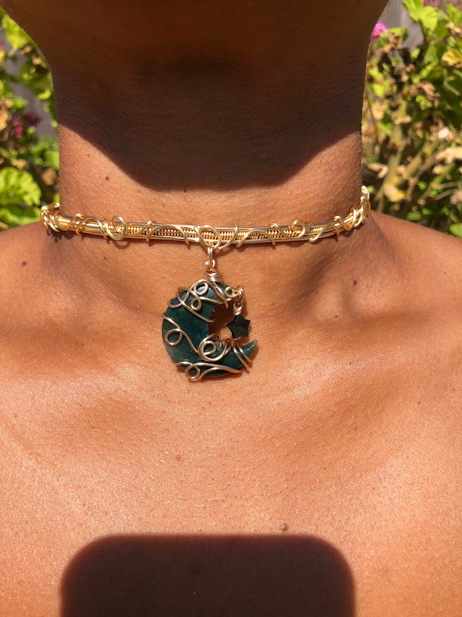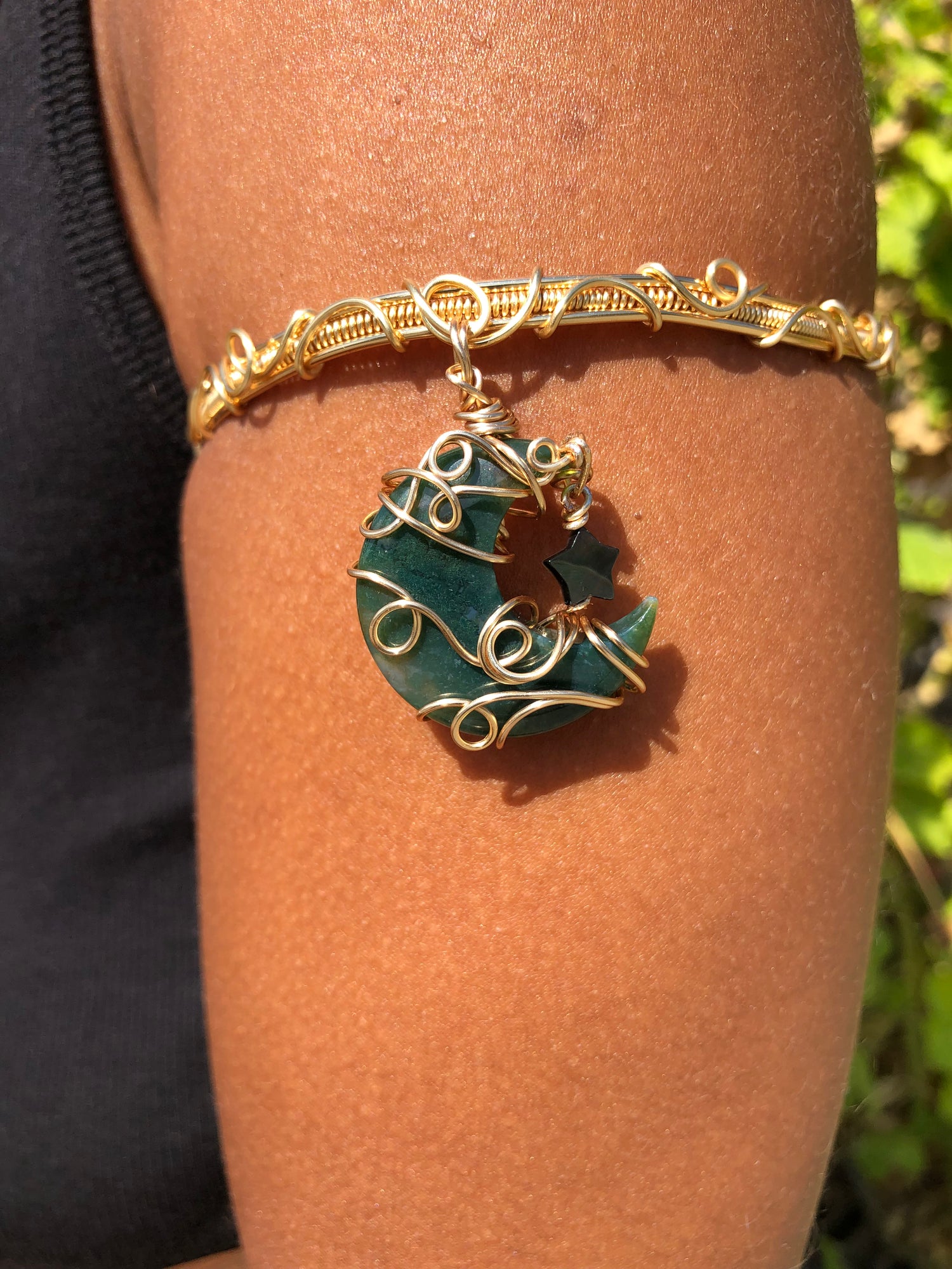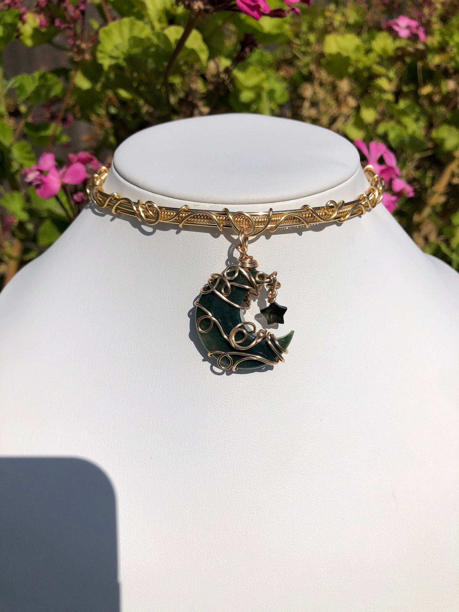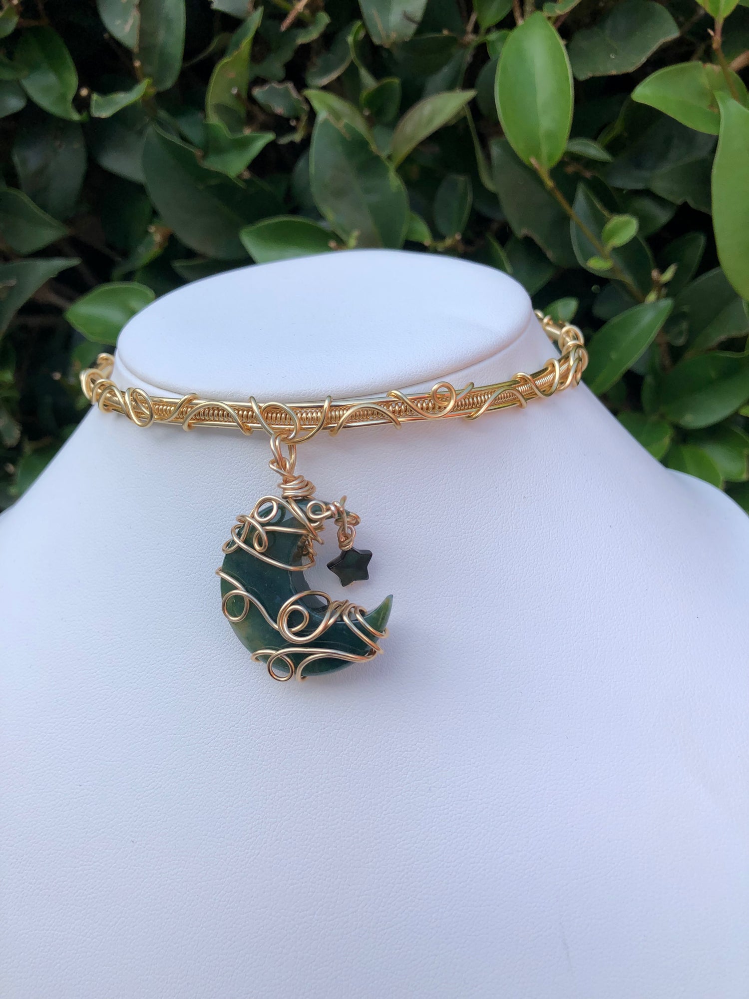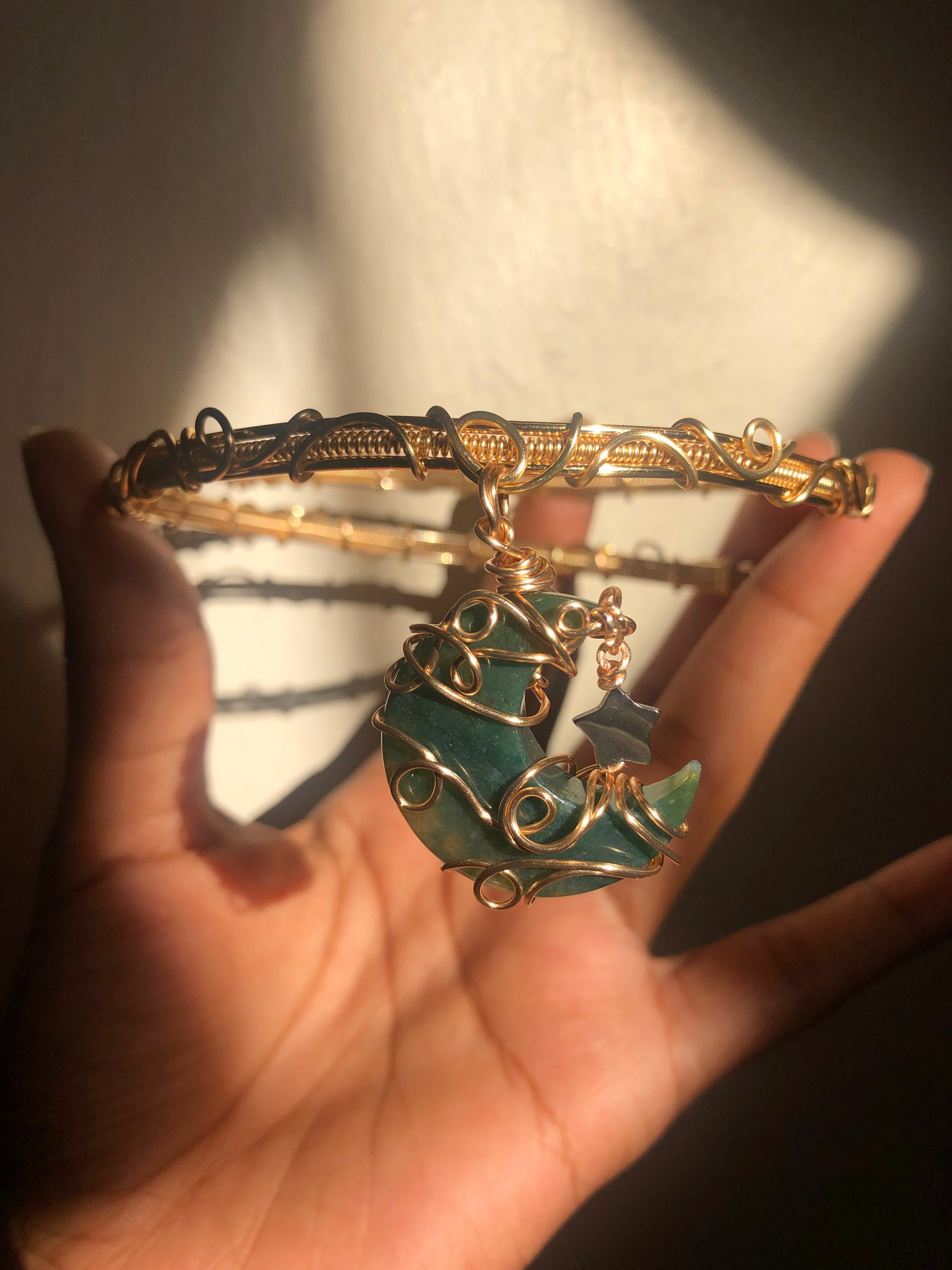Moss agate moon & mother of Pearl star