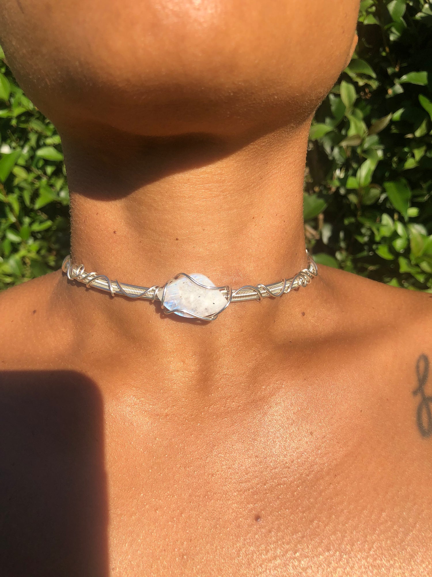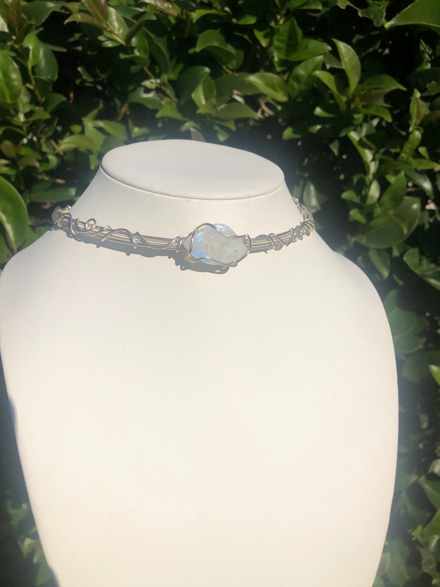 Sterling silver moonstone choker also can b worn as a bracelet, anklet , arm cuff