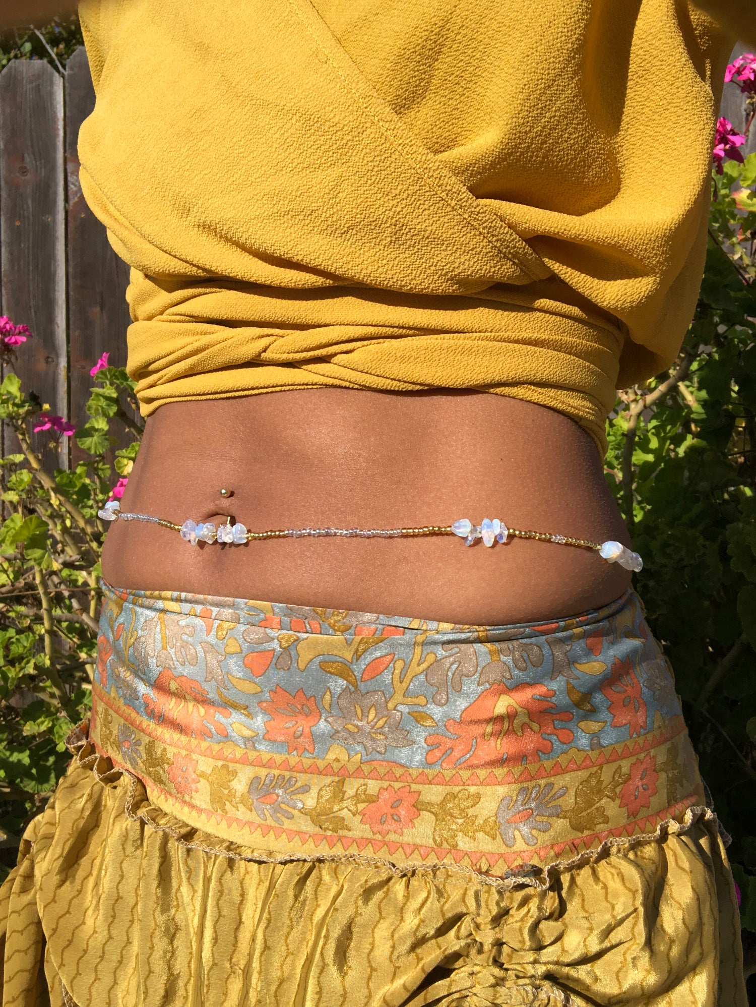 Opalite , clear Quartz and seed bead waist beads 30-33 inch adjustable clasp