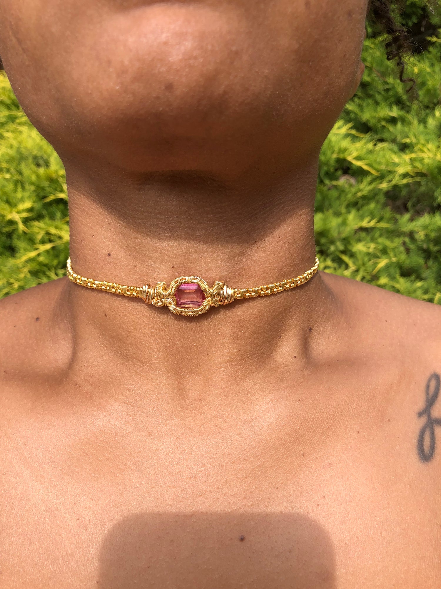 Adjustable 1 of 1 Pink Topaz choker, arm cuff ,