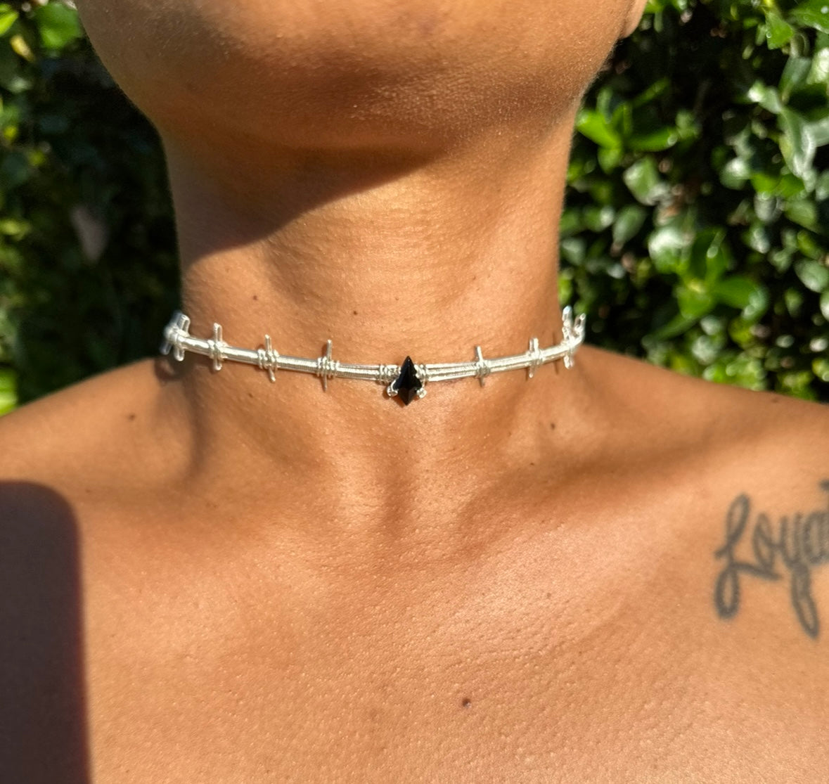 Handmade adjustable choker with black onyx , can b worn as a arm cuff bracelt and anklet. Also available in sterling silver and 14k gold filled